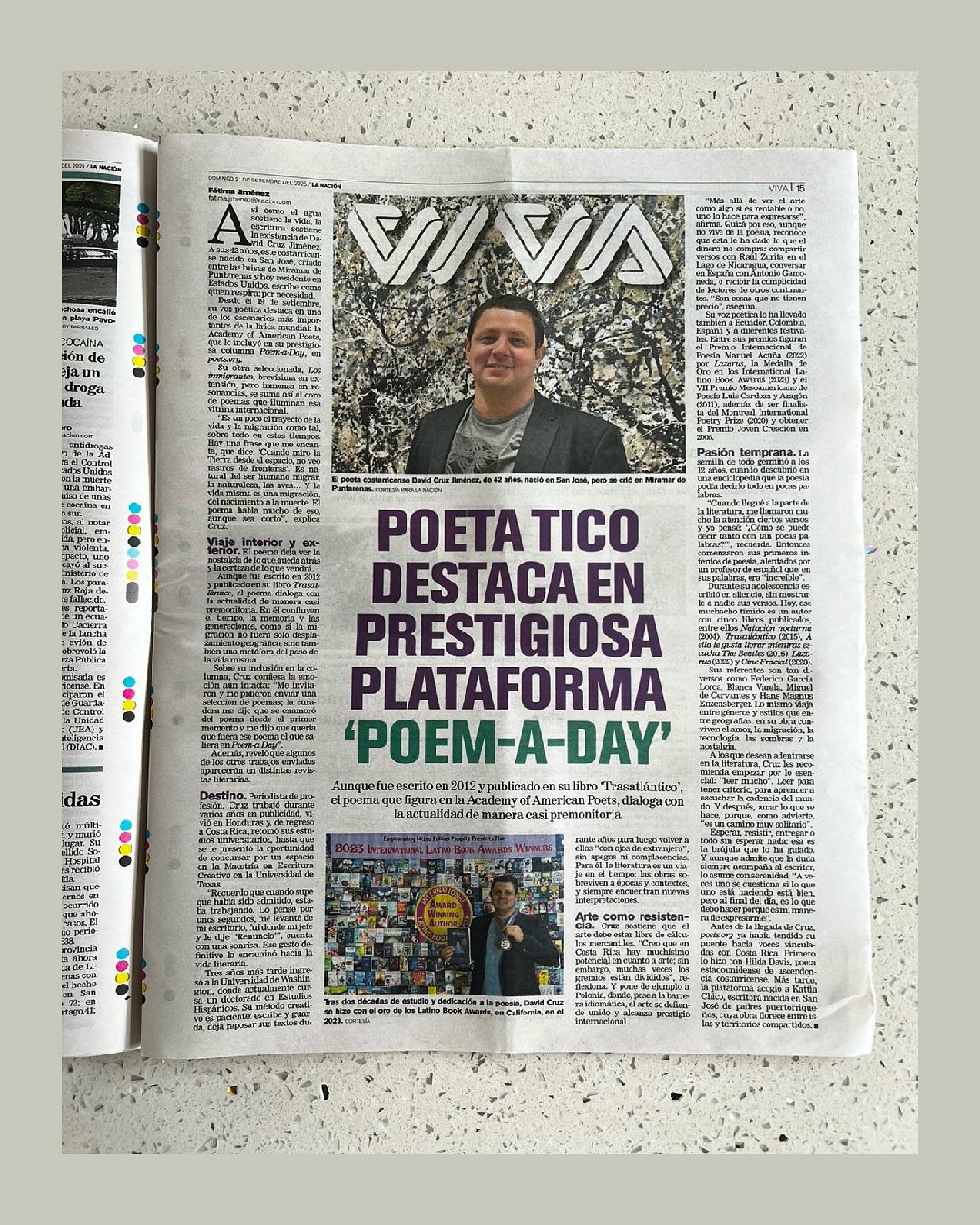 David's recognition by the Academy of American Poets received significant media coverage in Costa Rica, and La Nación featured and interview with David on the cover of its cultural section!